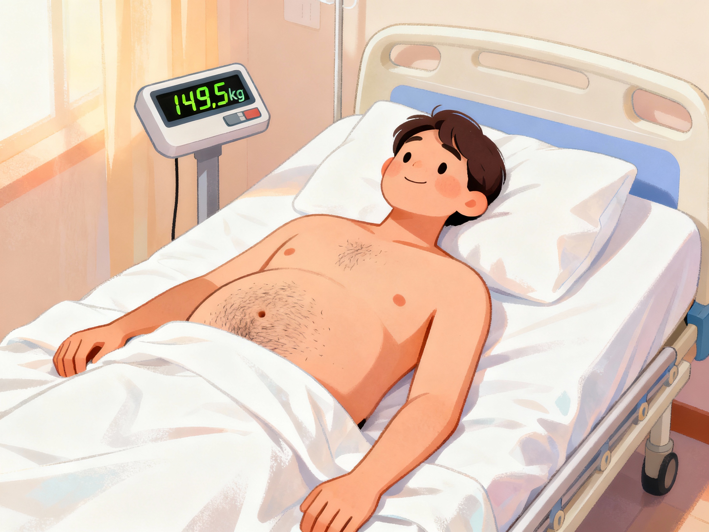 Das ist mein aktuelles Gewicht. Nachdem ich aber in den vergangenen 2 Wochen ca 6kg runter bekommen habe. Eiweißdiät. Nun liege ich im Krankenhaus auf meinem Bett, der Bauch ist rasiert und ich warte. Auf was? OP. Mein Magen wird heute verkleinert zu einem Schlauchmagen.